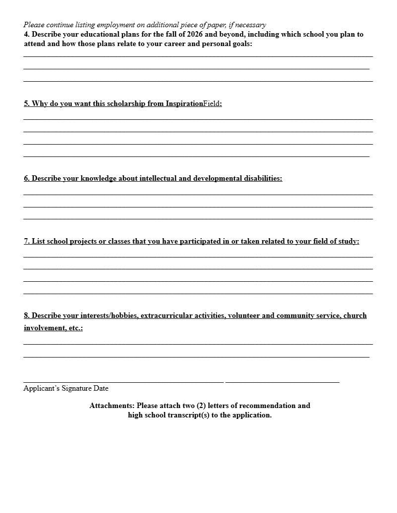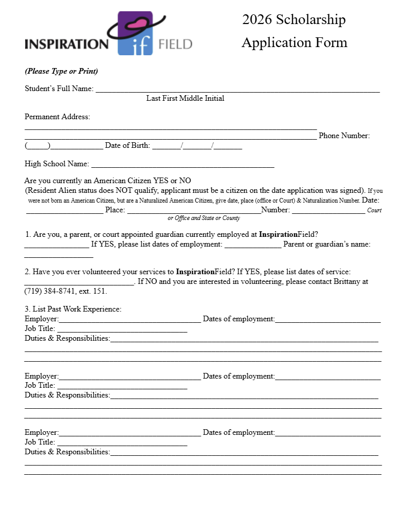 Inspiration Field is proud to offer scholarships to students pursuing higher education at an accredited university, college, or trade school. These scholarships are designed to support students working toward an Associate’s degree, Bachelor's degree, or trade certificate.